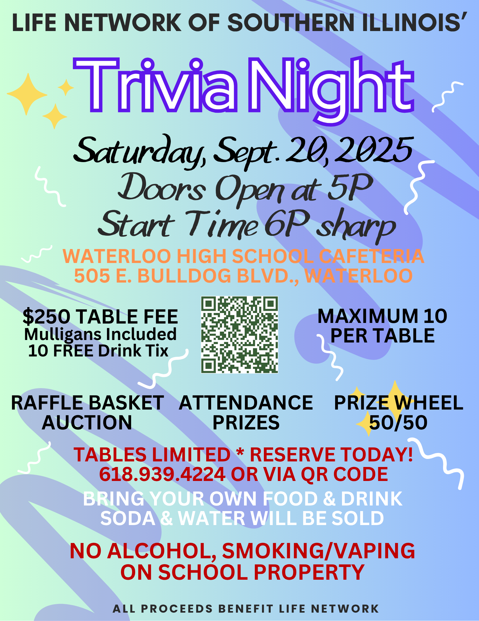 TIME TO REGISTER FOR YOUR LIFE TRIVIA NIGHT TABLE!!